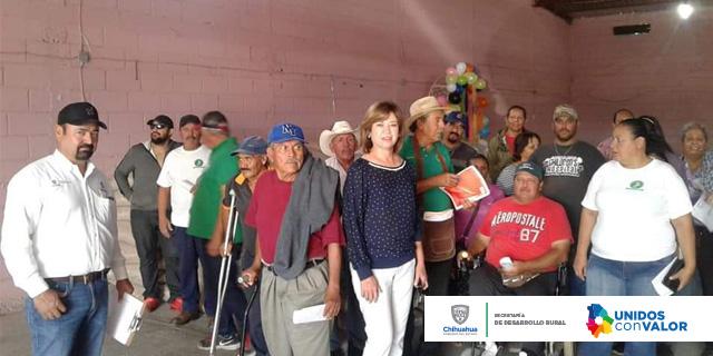 En Jiménez, la recaudadora Dolores Acosta Cano De los Ríos, realizó la entrega de 40 kilogramos para cada familia en el municipio, así como de Coronado, López, y Valle de Allende, siendo un total de 12 toneladas 680 kilos.