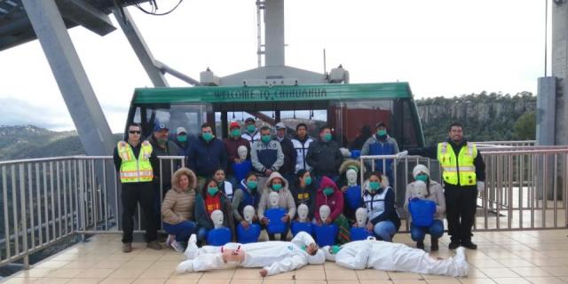 En dicho parque, 25 brigadistas internos reciben esta capacitación que tendrá una duración de 5 días, que les ayudará a recibir conocimientos básicos de primeros auxilios, que van desde cómo actuar con pacientes que sufren golpes de calor, quemaduras, hasta personas con paro cardiaco mediante ejercicios de Reanimación Cardiopulmonar (RCP), inclusive dentro del Teleférico, inmovilización de pacientes, valoración de la escena, fracturas, hemorragias y quemaduras.