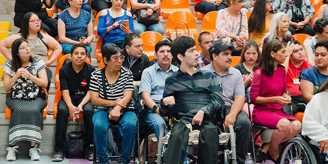 Durante el acto, se contó con la presencia de Víctor Quintana Silveyra, secretario de Desarrollo Social; Guadalupe González Castanedo, jefa del Departamento de Atención a Personas con Discapacidad y Prevención a la Discriminación; Manuel Trueva Martínez, presidente de Promotora Social, A.C.; Alma Cristina Treviño Olivas, coordinadora de la Red de Discapacidad; Yovana Guadalupe Cañedo Torres, coordinadora de la Escuela de Artes y Oficios; Manuel Iván Monge Quezada, coordinador administrativo de la Escuela de Artes y Oficios; así como 26 personas mayores y 207 personas con discapacidad estudiantes de la escuela, y sus acompañantes, y personal docente y administrativo.