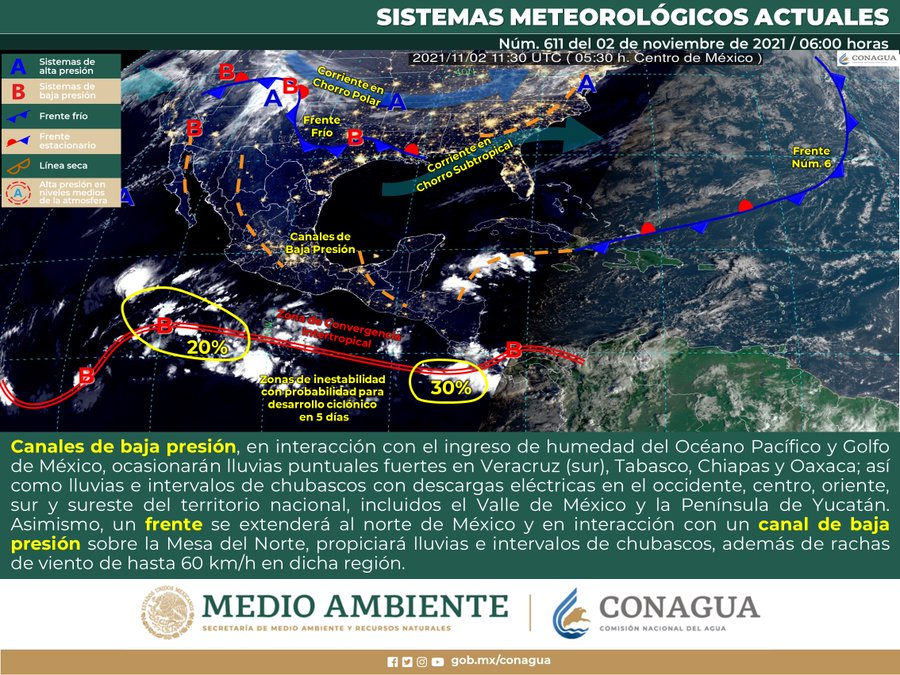 Además se pronostican lluvias aisladas (de 0.1 a 2 mm) en algunas zonas de las regiones sureste y noreste, con mayor presencia en los municipios de Coronado y Manuel Benavides, precipitaciones que pueden estar acompañadas de actividad eléctrica y caída de granizo.