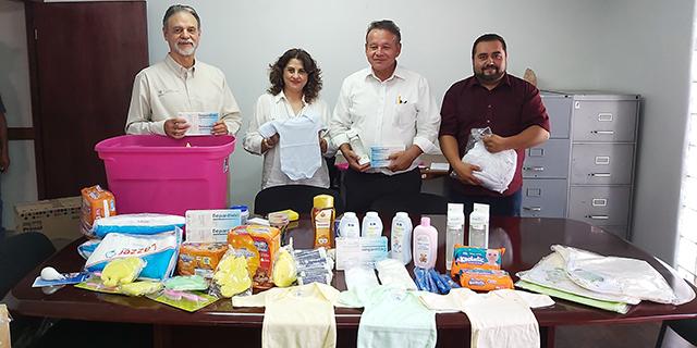 Los paquetes incluyen biberones de vidrio de 5 y 10 onzas, pañales desechables, toallitas húmedas, jabones, champús, cremas, talcos, aspiradores nasales, peines, cepillos, toallas de medio baño, esponjas, cepillos dentales, pañaleros, calcetines, pomadas, vasos entrenadores, cuneros, portabebés, filipinas y un botiquín de primeros auxilios.