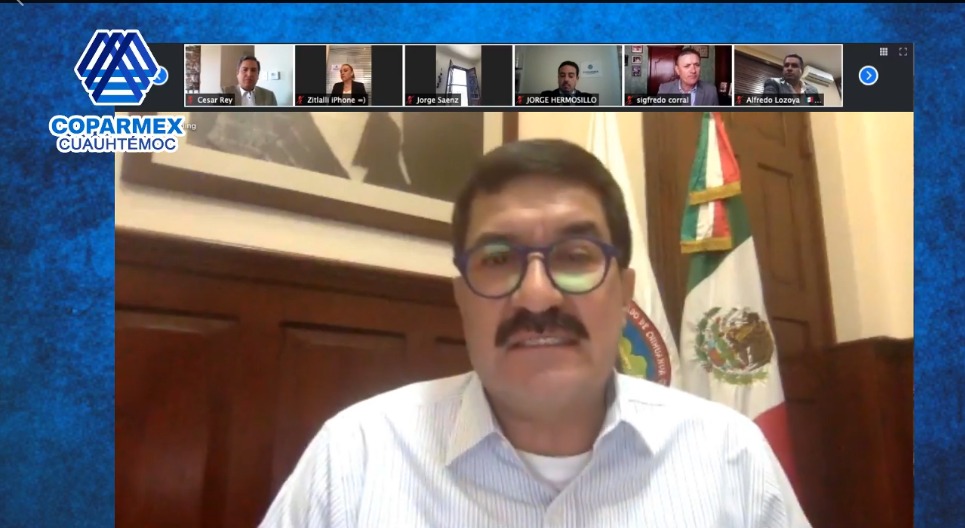 Participa Gobernador en la XVIII Asamblea Virtual Anual de Coparmex Cuauhtémoc junto con el dirigente nacional Gustavo de Hoyos Walter