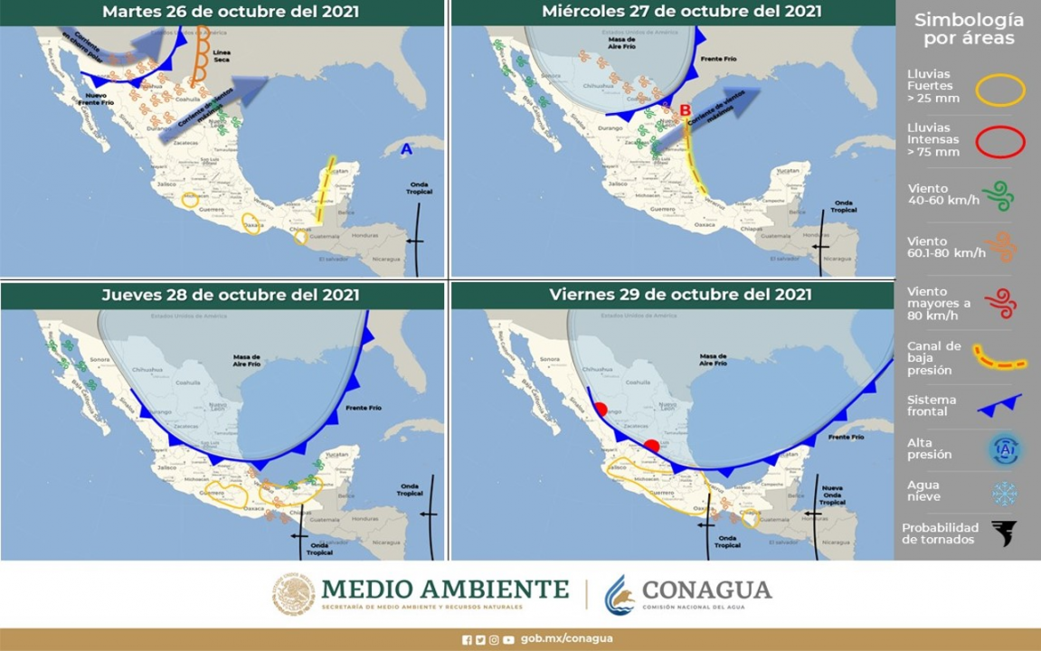 Mientras para este próximo miércoles 27, se prevé el descenso de temperaturas en la mayor parte del territorio estatal y ráfagas de viento superiores a los 65 km/h en Manuel Benavides; 55 km/h en Juárez, Ojinaga y Guadalupe y 45 km/h en Ahumada, Aldama y Jiménez. Con posibles tolvaneras en el tramo carretero de Ahumada a Juárez. Las bajas temperaturas se mantendrán hasta el viernes.