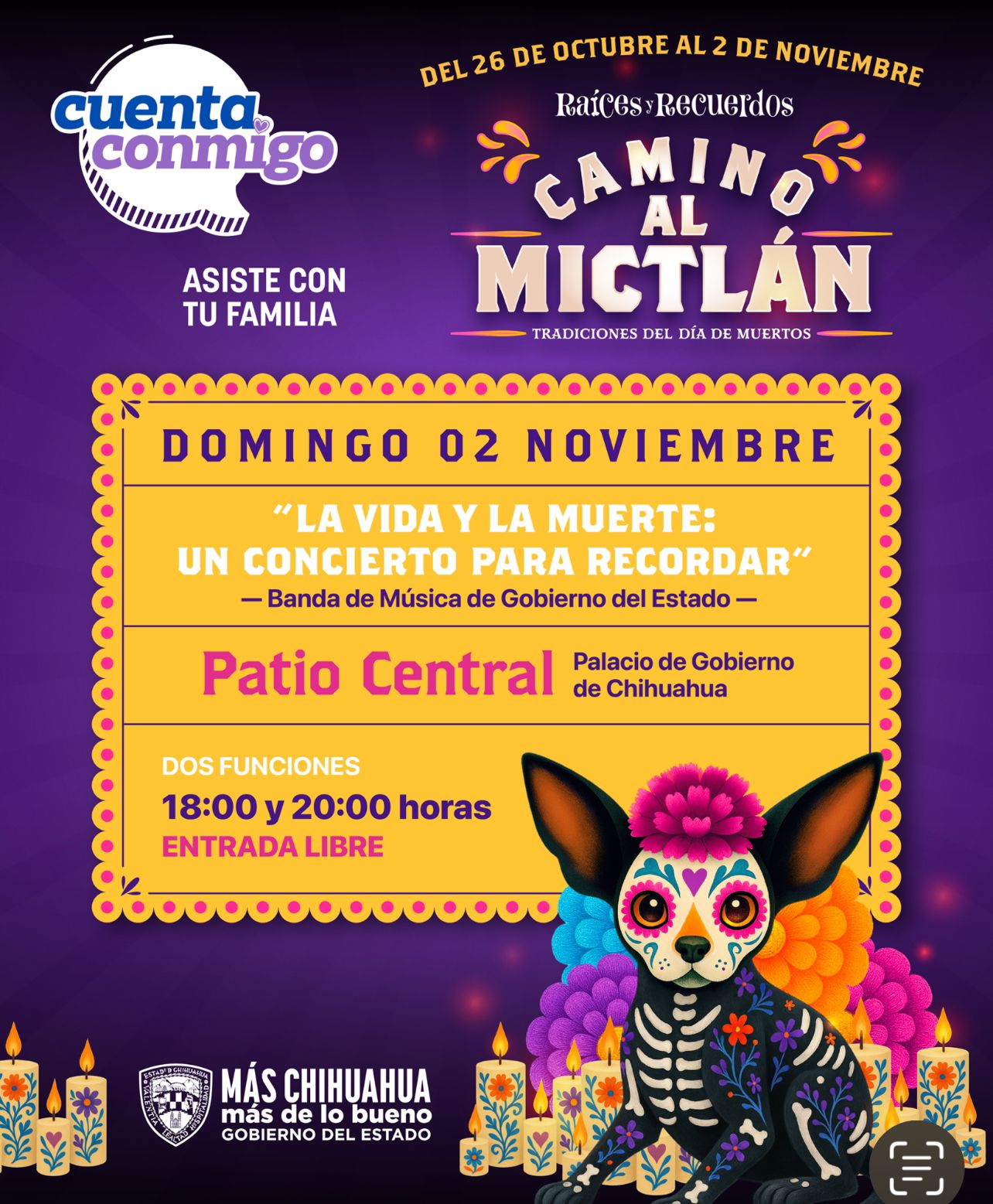 El domingo 2 de noviembre, la Banda de Música de Gobierno del Estado presentará “La vida y la muerte: un concierto para recordar”, también a las 18:00 y a las 20:00 horas.