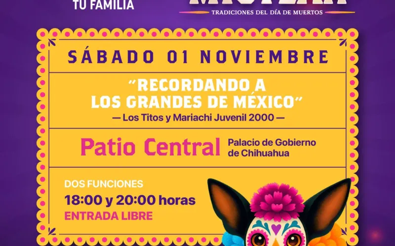 El sábado primero de noviembre deleitarán a la concurrencia Los Titos y el Mariachi Juvenil 2000, con el concierto “Recordando a los grandes de México”, a las 18:00 y las 20:00 horas.