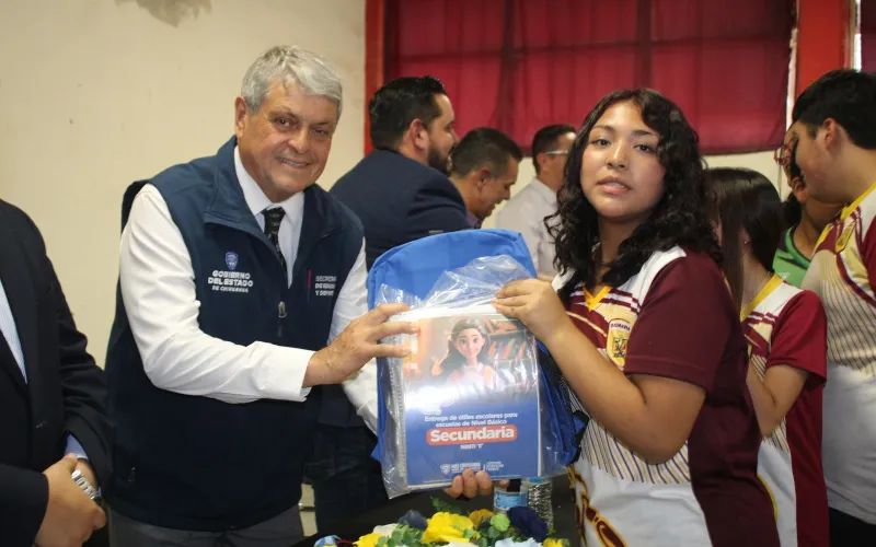 El acto fue en la Secundaria Estatal No. 3012, donde el representante de Gobierno en la frontera, Carlos Ernesto Ortiz Villegas; y el subsecretario de Educación Zona Norte, Maurilio Fuentes Estrada, destacaron la importancia de entregar recursos que impulsen el aprendizaje.