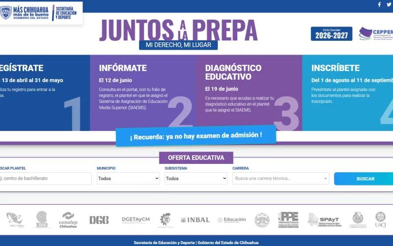 La Secretaría de Educación y Deporte (SEyD) informó que a partir del próximo lunes inicia el Registro Único en Línea para aspirantes a planteles públicos de Educación Media Superior, ciclo escolar 2026-2027, como parte de la estrategia “Juntos a la Prepa. Mi Derecho, Mi Lugar”.