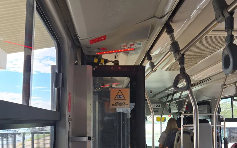 La Secretaría General de Gobierno, a través de la Operadora de Transporte (OTV) hace un llamado a las y los usuarios para conocer las luces en las puertas de cada unidad, una de las funcionalidades de seguridad de los camiones del JuárezBus.