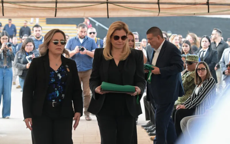 La gobernadora Maru Campos encabezó la ceremonia en que se rindieron honores a los elementos de la Agencia Estatal de Investigación (AEI), que fallecieron en un accidente automovilístico ocurrido el pasado fin de semana.