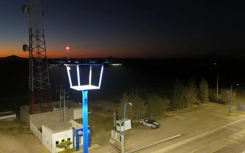 Cada poste tiene un sistema de pararrayos y luz de obstrucción, que protege tanto a usuarios como al personal.