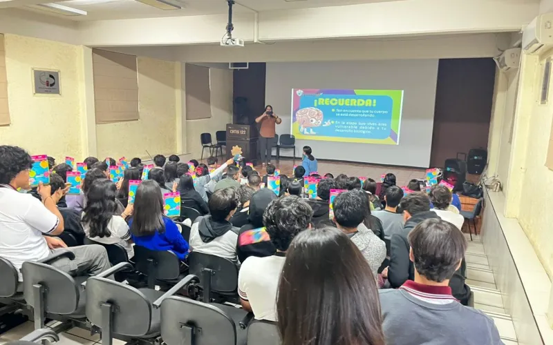 El DIF Estatal Chihuahua, a través de la Dirección de Fortalecimiento Familiar, impartió el taller “El cerebro adolescente” a más de 500 estudiantes del CBTIS 122, con el objetivo de fortalecer la reflexión, el autocuidado y la toma de decisiones responsables.