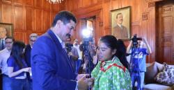 Recibe Javier Corral a integrantes de la familia Ramírez que participó en el Ultramaratón Bluetrail...
