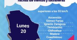 -En algunas regiones las rachas de viento podrían superar los 90 km/h