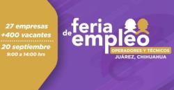 Ofertarán espacios para puestos operativos, técnicos y profesionistas este vienes 20 de septiembre...