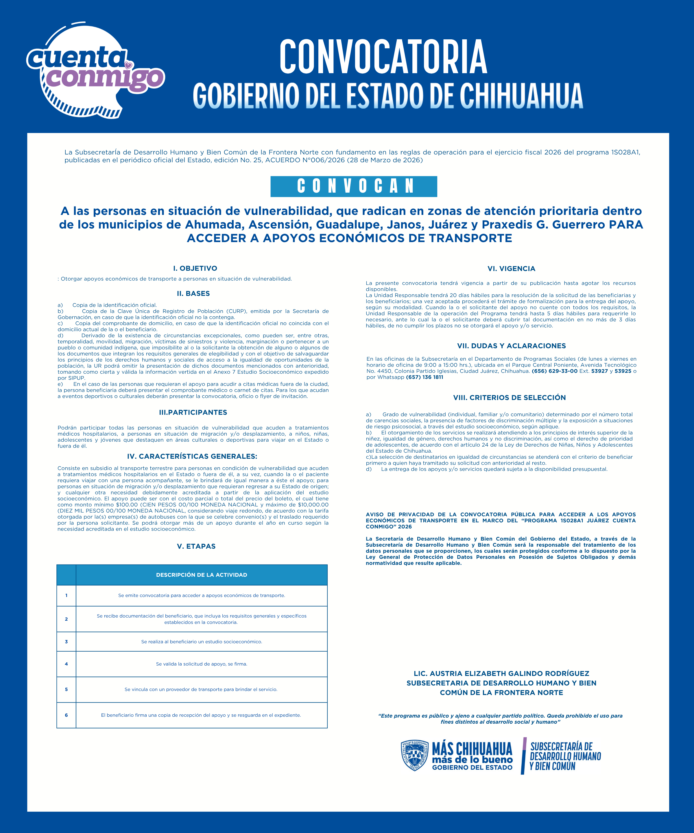| Convocatoria | Convocatoria Apoyos Económicos de Transporte |