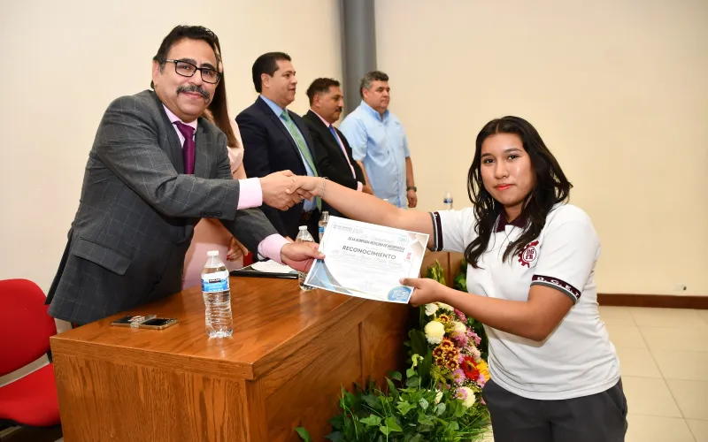 Durante la ceremonia se entregaron reconocimientos a los asesores Jorge Fernández Quezada y Mario Héctor Valenzuela Trujillo, además de la entrenadora Rocío Zea Rico, y al personal de la Facultad de Contaduría y Administración de la UACH.