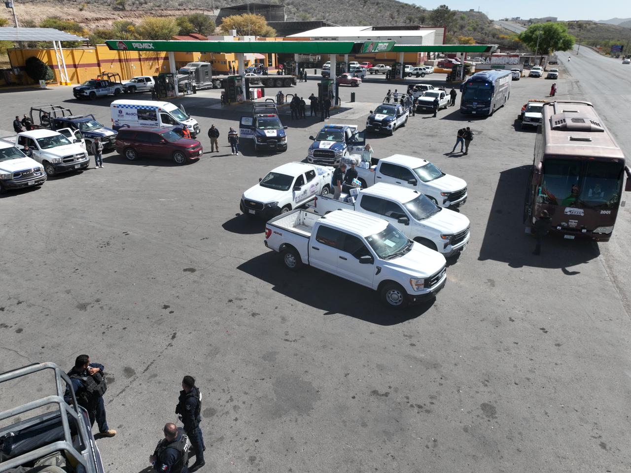Para el regreso seguro de las personas a sus hogares, se utilizaron dos camiones de pasajeros, una van y diez vehículos particulares, todos resguardados durante el trayecto gracias a un operativo de seguridad que contó con 11 unidades y 36 elementos, así como vigilancia aérea.