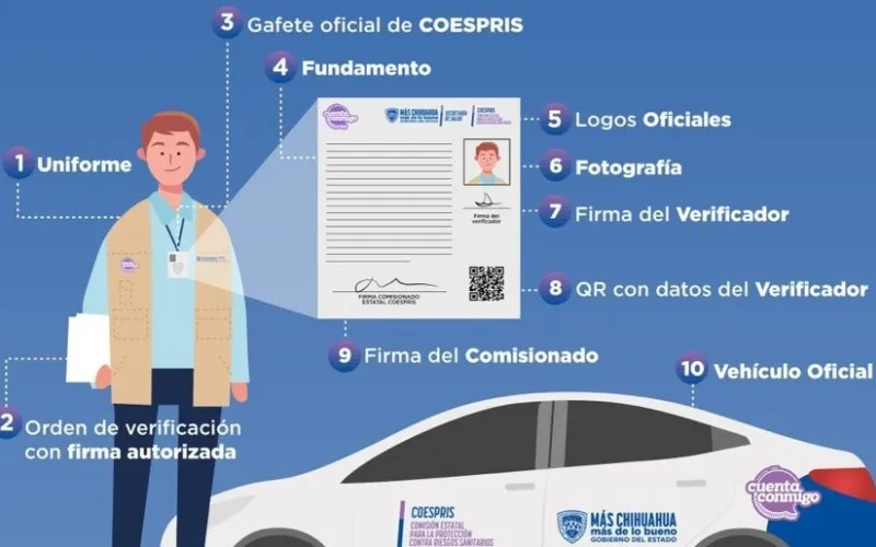 Todo personal autorizado de Coespris debe contar con un vehículo oficial rotulado, gafete oficial vigente, uniforme institucional y una orden de verificación debidamente fundamentada y por escrito.