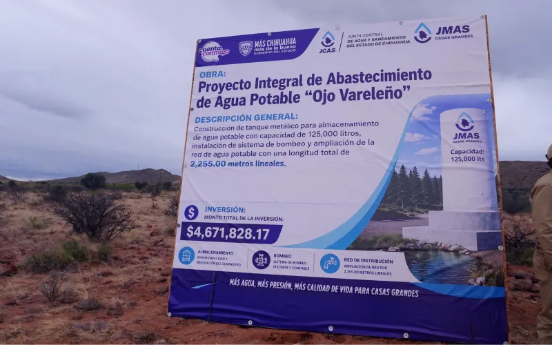 Con el objetivo de garantizar un servicio más estable, eficiente y con mayor cobertura, la Junta Central de Agua y Saneamiento (JCAS), en coordinación con la Junta Municipal de Agua y Saneamiento (JMAS) de Casas Grandes, dio inicio a la obra del Proyecto integral de abastecimiento de agua potable “Ojo de Valereño”, una intervención clave para fortalecer la infraestructura hidráulica del municipio.