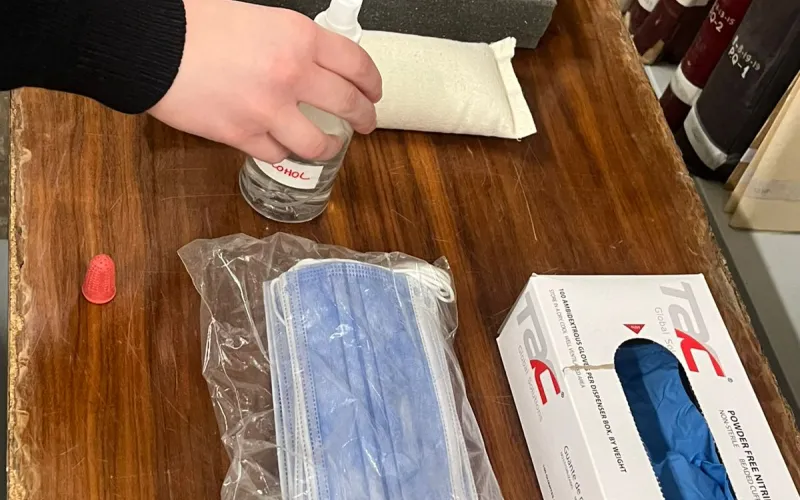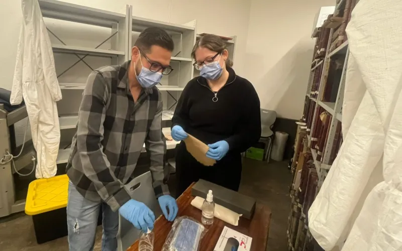 Cervera explicó el uso de trajes Tyvek, diseñados para cubrir completamente el cuerpo y evitar tanto la exposición del personal a alérgenos, como la posible contaminación de los documentos.