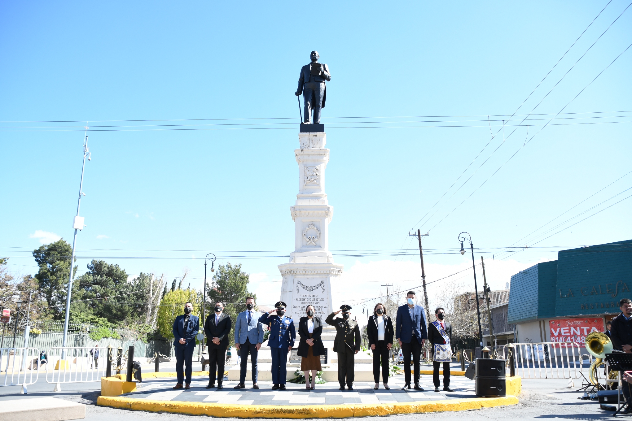 El acto cívico se desarrolló en el Monumento a Benito Juárez, con la presencia de autoridades civiles y militares, docentes y estudiantes del Colegio Patria, niñas de la Casa Hogar de Chihuahua A.C., personal administrativo de la Secretaría de Cultura, además de integrantes de las diversas logias de Chihuahua.