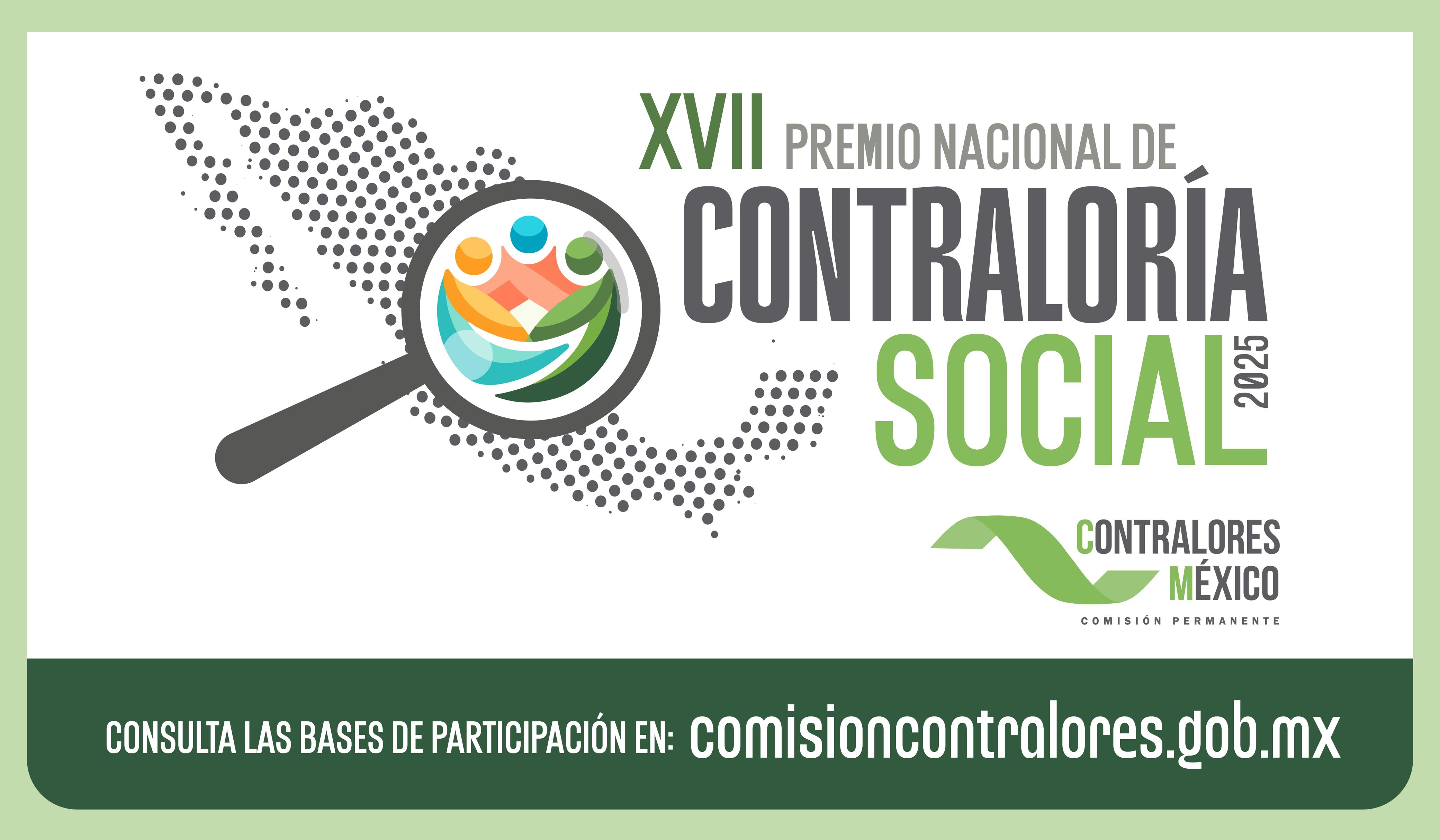 La Comisión Permanente de Contralores Estados-Federación convoca a participar en el Premio Nacional de Contraloría Social 2025 que tiene como objetivo reconocer las mejores prácticas de vigilancia ciudadana en la gestión pública, impulsando la transparencia y la rendición de cuentas.