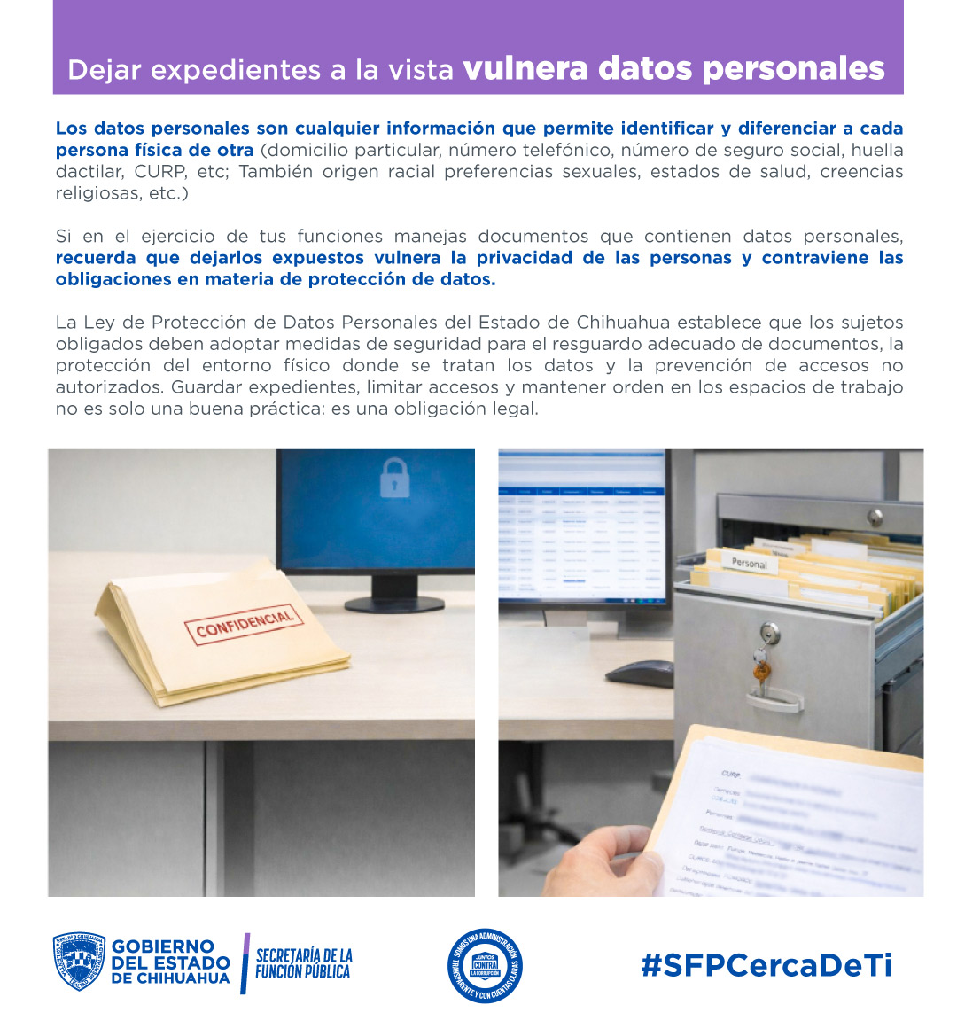Dejar expedientes a la vista vulnera datos personales.