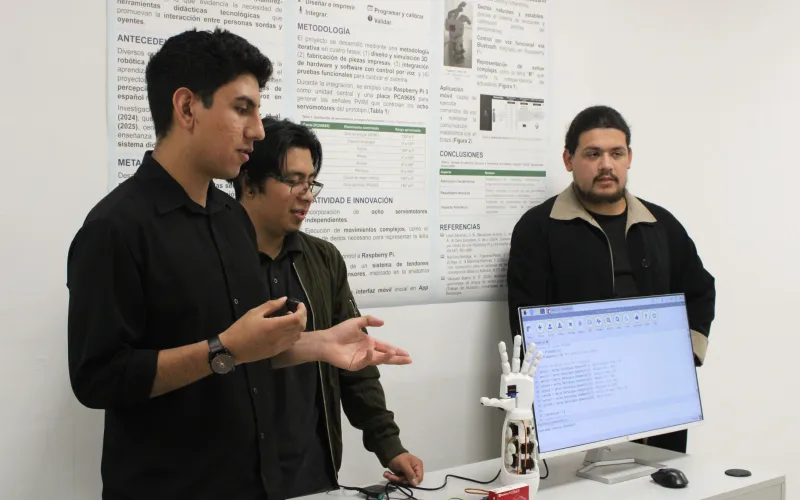 Estudiantes de Ingeniería en Mecatrónica de la Universidad Tecnológica Paso del Norte (UTPN), desarrollaron un sistema robótico didáctico controlado por voz para representar la Lengua de Señas Mexicana (LSM).