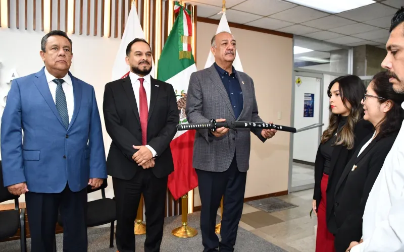 Durante el acto también se hizo entrega de la Katana de Mando a representantes de Safran, primera empresa chihuahuense en obtener el Reconocimiento Taiichi Ohno por su compromiso con la calidad, la innovación y la mejora continua.