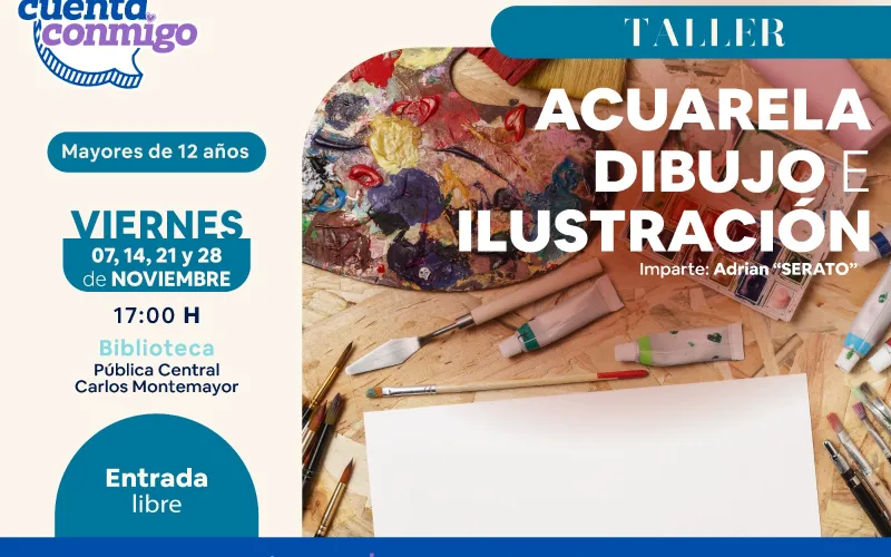 Adrián Serato, por su parte, invita niñas y niños mayores de 12 años a tomar el taller de acuarela, dibujo e ilustración, los días viernes 14, 21 y 28 de noviembre, a las 5 de la tarde, en el que descubrirán las técnicas para dibujar e ilustrar con estas técnicas.