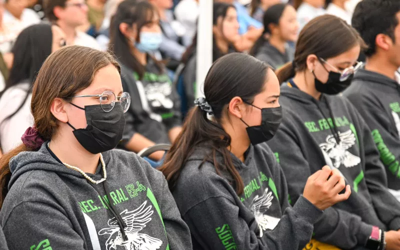 El presídium fue integrado además por el Diputado Luis Aguilar, por el presidente del Consejo de Desarrollo Económico Héctor Salgado y por el Profesor Mario Campa, representante de la secundaria Federal No 4. Como invitados especiales los alcaldes Sergio Cruz y Jaime Ramírez de los municipios de La Cruz y San Francisco de Conchos.