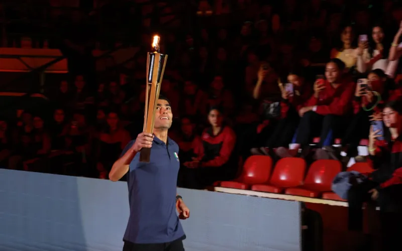 Como parte del acto protocolario, se realizó el encendido del pebetero a cargo de Andrés Olivas Núñez, medallista olímpico y exalumno del Plantel 2, además de la tradicional arenga deportiva.