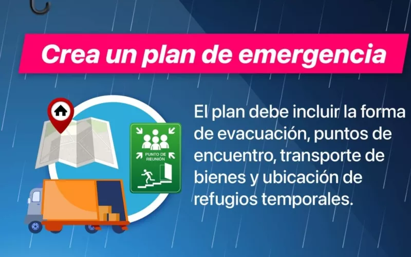 La dependencia estatal recomendó crear un plan familiar de protección civil, con el que se tenga a la mano las rutas de evacuación seguras. Además, los especialistas recomiendan guardar documentos personales importantes en una bolsa de plástico o en una memoria USB, en caso de que la lluvia inicie a causar estragos.