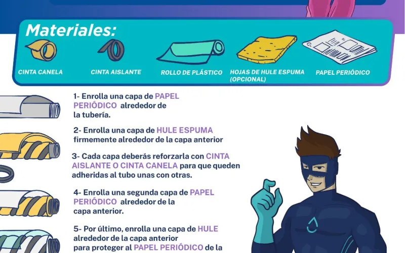 La dependencia recomendó cubrir de manera adecuada las tuberías que se encuentran expuestas, con materiales aislantes como periódico, plástico, papel y telas gruesas o productos especializados, para evitar así daños debido a la expansión de recurso hídrico congelado.