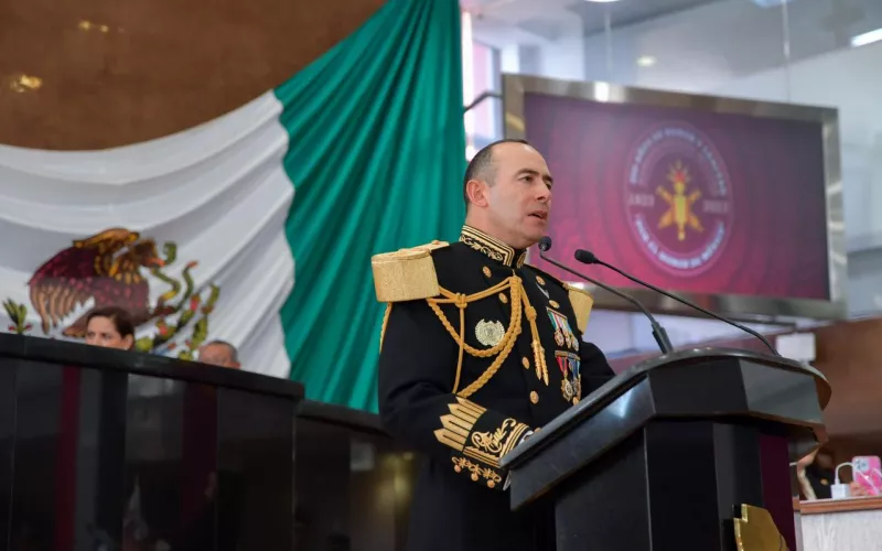 La gobernadora Maru Campos acudió a la develación de la placa en letras doradas en conmemoración del 200 aniversario de la fundación del Heroico Colegio Militar, mismas que fueron instaladas en los Muros de Honor del Congreso del Estado.