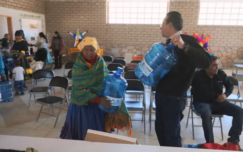 Durante su mensaje, el titular de la JCAS enfatizó que, gracias al trabajo de Cedain y al apoyo del Gobierno del Estado, este año se está llevando a cabo la instalación de nuevas Cosechas de Agua en diversas comunidades de la Sierra Tarahumara.