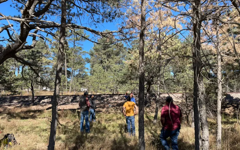 Como parte de los trabajos, se realizaron recorridos de campo para identificar brotes activos, evaluar el nivel de afectación y definir áreas prioritarias de atención, en coordinación con la Comisión Nacional Forestal (Conafor), técnicos especializados, comisariados ejidales y propietarios forestales.