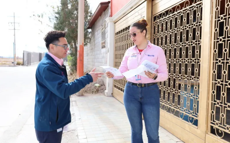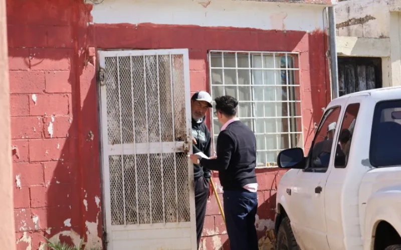 Personal de la Comisión Estatal de Vivienda, Suelo e Infraestructura de Chihuahua (Coesvi), en recorrido por la colonia Sahuaros, en la capital, invitó a las familias a aprovechar los beneficios que ofrece el programa “Juntos escrituramos tu vivienda”.