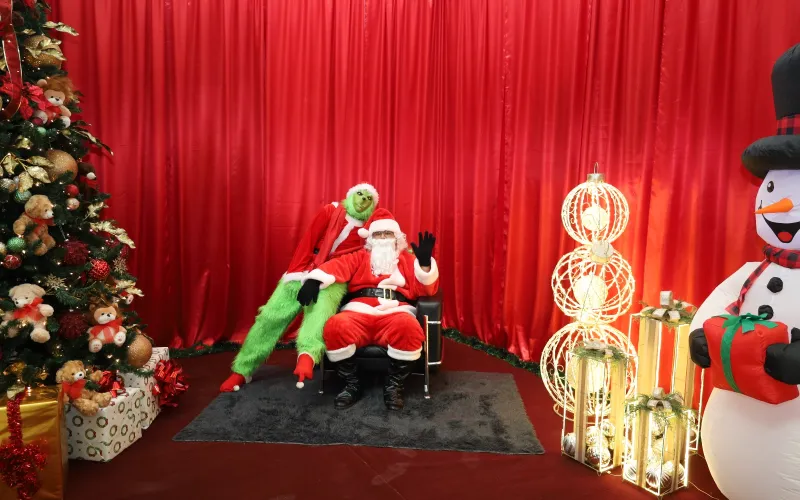 Las niñas y los niños, acompañados de sus familias, se tomaron fotografías con Santa Claus y El Grinch, además de disfrutar de dulces, alimentos y una sorpresa que se les preparó especialmente.