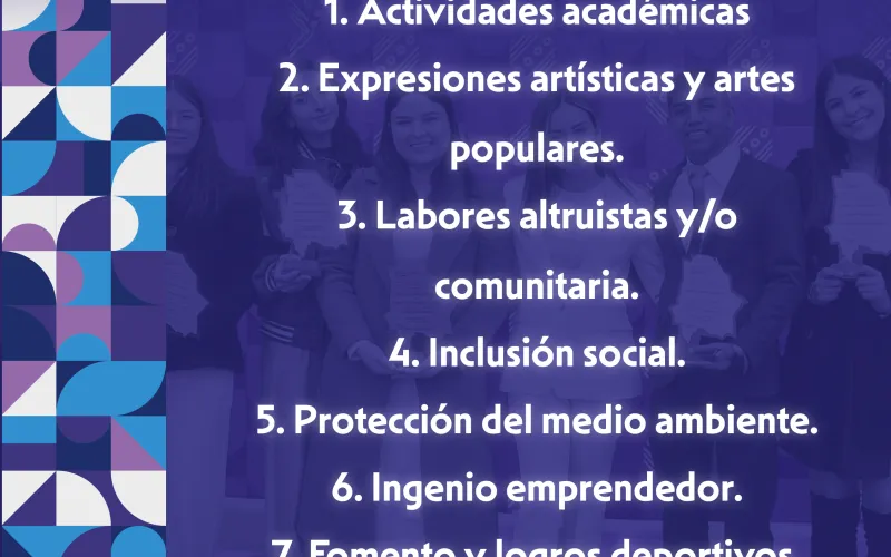 El Premio Estatal de la Juventud 2025 contempla siete categorías: Actividades Académicas, Expresiones Artísticas y Artes Populares, Labor Altruista y/o Comunitaria, Inclusión Social, Protección del Medio Ambiente, Ingenio Emprendedor, y Fomento y Logros Deportivos.