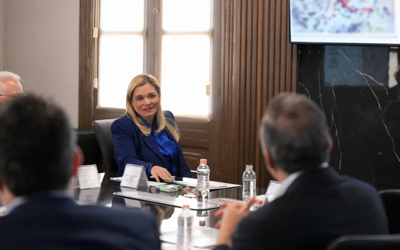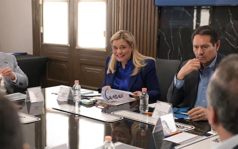 La gobernadora Maru Campos se reunió este lunes en Palacio de Gobierno, con empresarios y funcionarios estatales y municipales, para analizar la situación de la ciudad de Chihuahua en el rubro de tránsito y semaforización.