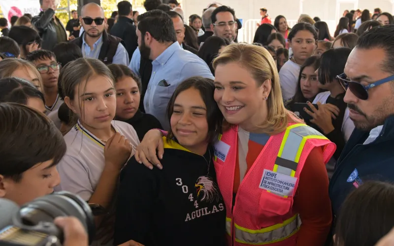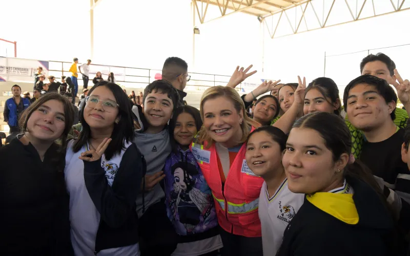 La gobernadora Maru Campos arrancó en la Escuela Secundaria 3044 de la ciudad de Chihuahua el Programa Juntos Construimos, con el que se mejorará la infraestructura de planteles de Educación Básica, en beneficio de 13 mil 989 estudiantes.