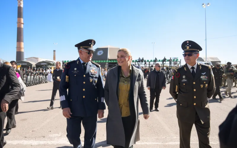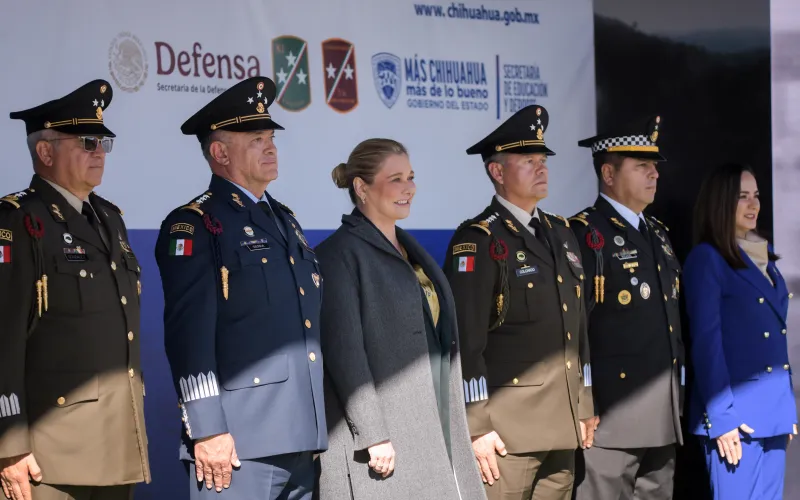 La gobernadora Maru Campos acompañó a las autoridades del Ejército Mexicano, en la ceremonia de clausura de la exposición militar “La Gran Fuerza de México” que se llevó a cabo en la ciudad de Chihuahua.