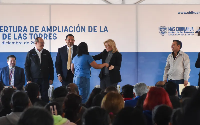La gobernadora Maru Campos encabezó en Ciudad Juárez la ceremonia inaugural de los trabajos de prolongación de la avenida de Las Torres, donde se hizo una inversión de 35 millones de pesos en beneficio de más de medio millón de habitantes.