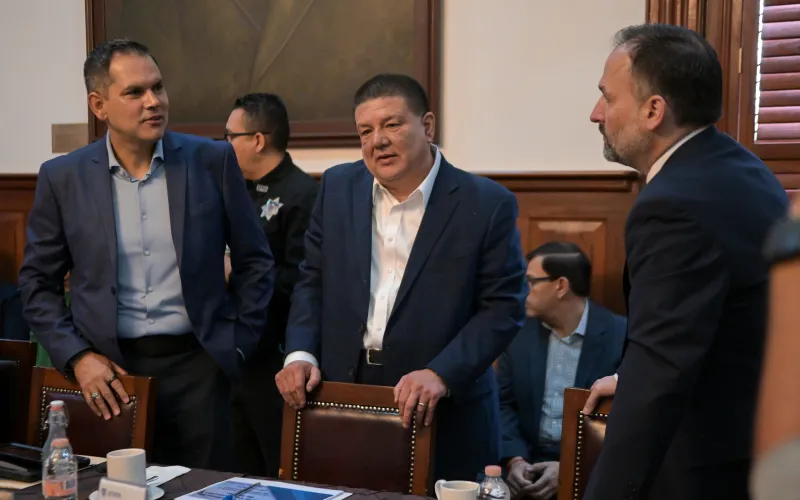 También el secretario general de Gobierno, Santiago De la Peña; César Jáuregui, fiscal general del Estado; Gilberto Loya, secretario de Seguridad Pública; el general Edilberto Jasso, jefe de Estado Mayor de la 5/a Zona Militar; el coordinador territorial de la Guardia Nacional en la Región Noroeste, Julio César Moreno y el general de Brigada de Estado Mayor, David Antonio López, comandante de la 42/a Zona Militar.