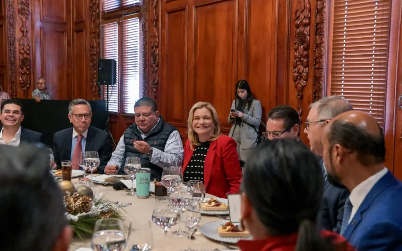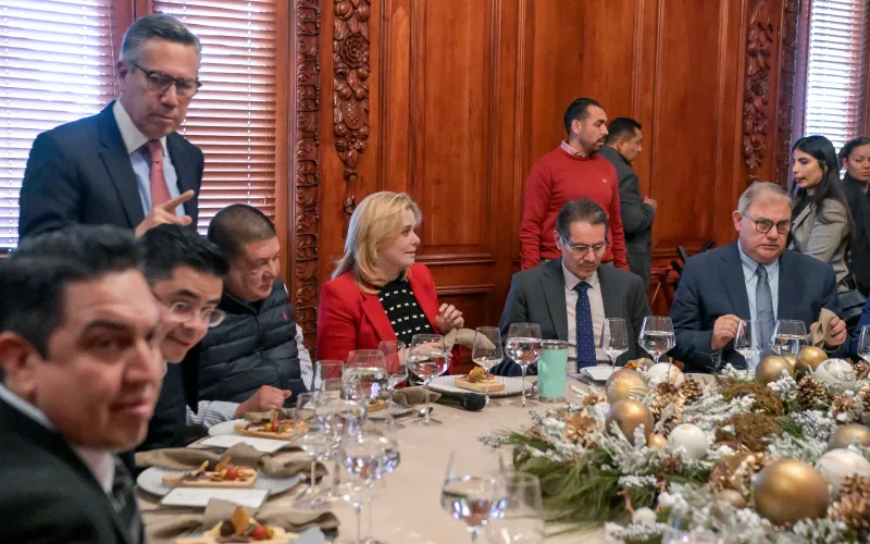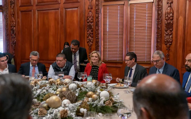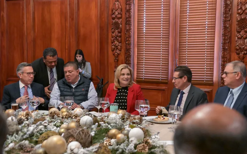 Maru Campos encabeza brindis navideño con miembros de su Gabinete