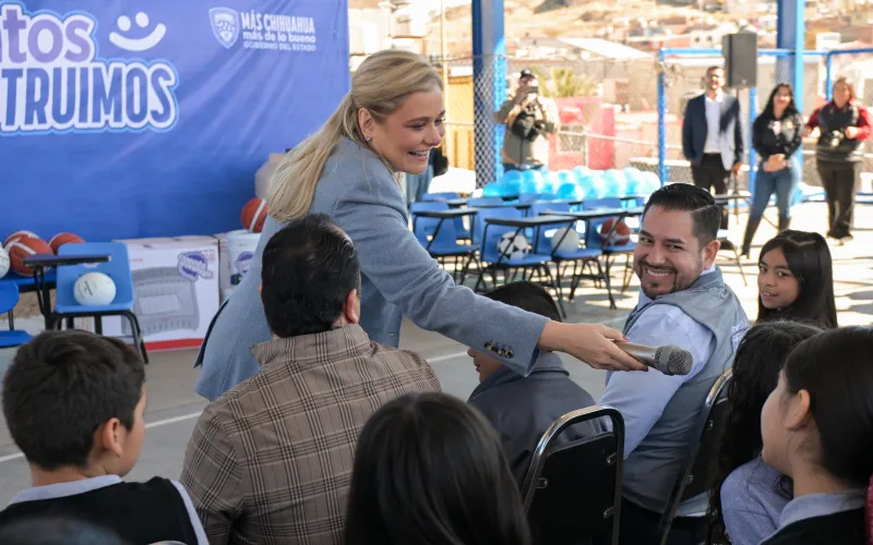 La gobernadora Maru Campos encabezó en Parral la entrega de mobiliario y equipo, para 110 escuelas de municipios de la región sur del estado, en los que son atendidos más de 25 mil niñas y niños.