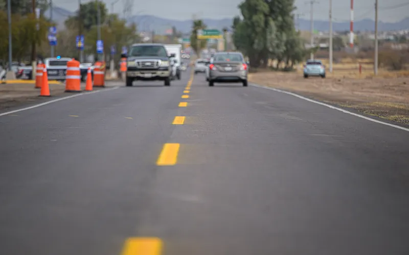 En el camino que conduce a la presa Francisco I. Madero, inauguró la rehabilitación de 132 kilómetros de ocho carreteras que conectan a Delicias con los municipios de Satevó, Valle de Zaragoza, Parral, Rosales, Meoqui, Saucillo y Julimes, con una inversión de 269 mdp.