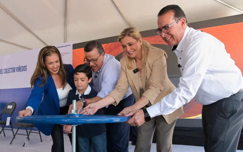 La gobernadora Maru Campos encabezó en Ciudad Juárez la inauguración del Colector Viñedos en beneficio de más de 441 mil habitantes, en seguimiento a la estrategia de su administración, de mejorar la infraestructura sanitaria y las redes de alcantarillado en zonas urbanas.
