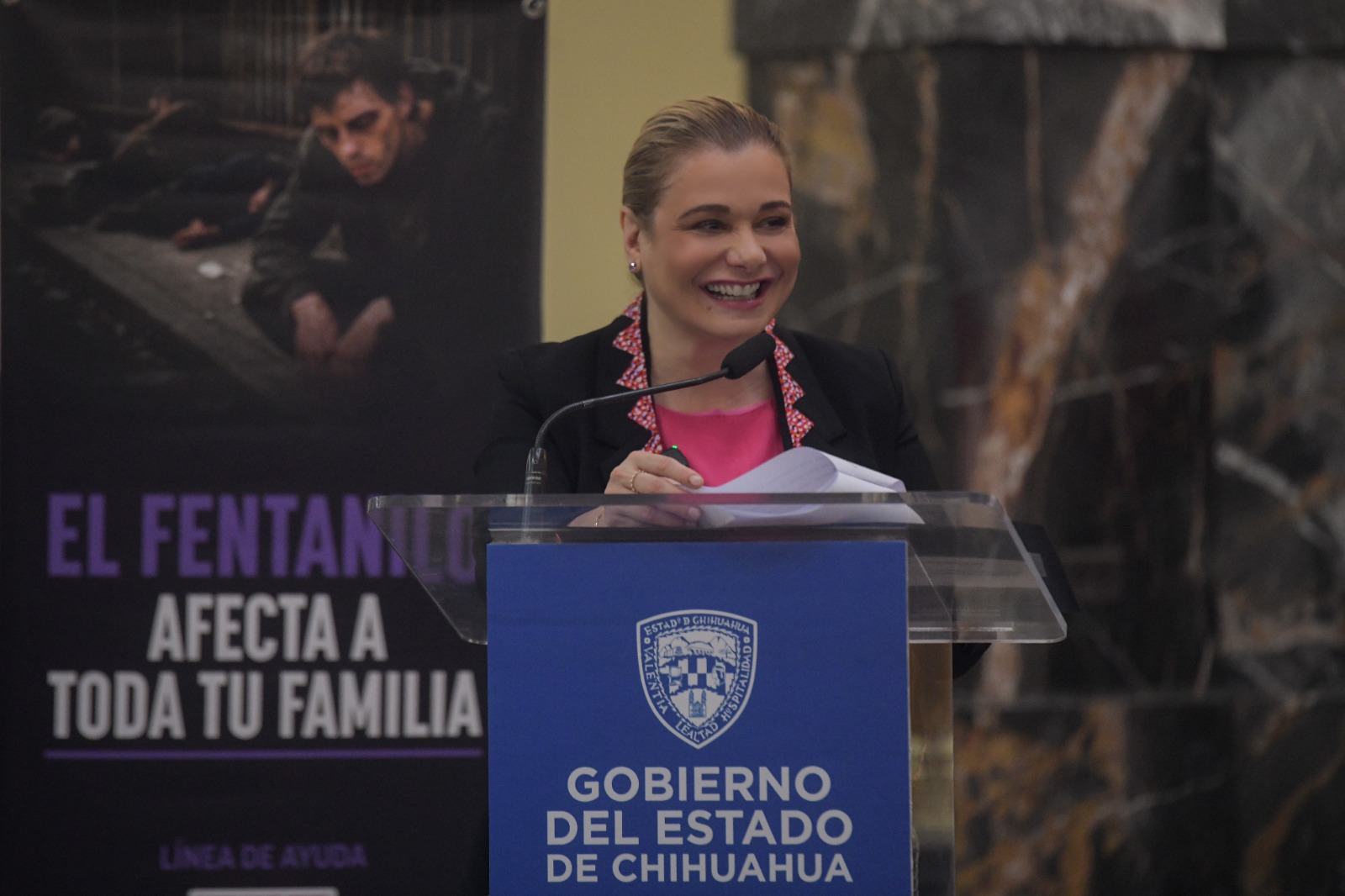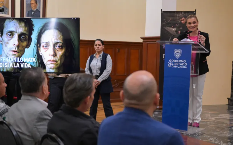 “No vamos a permitir que una crisis tan difícil como la que ha sido causada por el fentanilo en otras regiones, ataque a la sociedad chihuahuense. Protegeremos nuestras comunidades, especialmente a nuestros niños y jóvenes”, afirmó la mandataria estatal al exponer el proyecto.